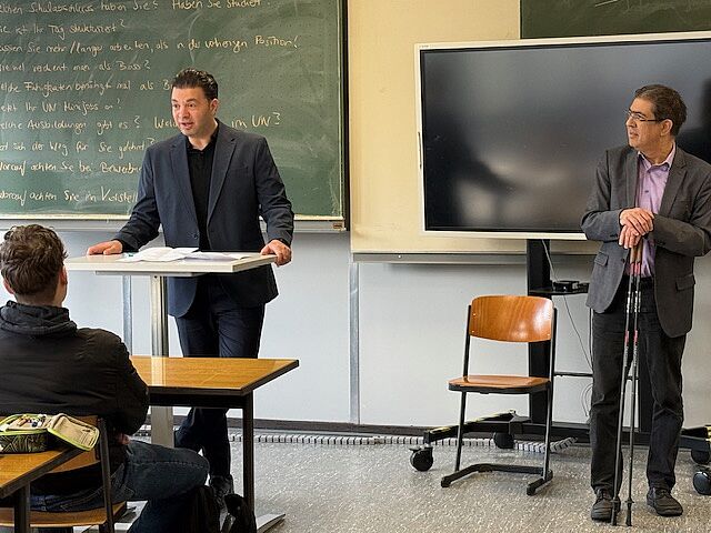 Die HöHa-Unterstufen und die IVA-Mittelstufe wurden am 06.03.26 im Unterricht im Rahmen der Aktion „Bosse in Schulen“ von der GJU (Gemeinschaft junger Unternehmer) besucht. Die Unternehmer haben mit den Schülerinnen und Schülern über ihren Werdegang, ihr Unternehmen und ihre Erwartungen an Auszubildende gesprochen.
