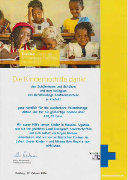 Wir hoffen auch im kommenden Jahr, der Kindernothilfe mit einer Spende zum Valentinstag wieder helfen zu können.